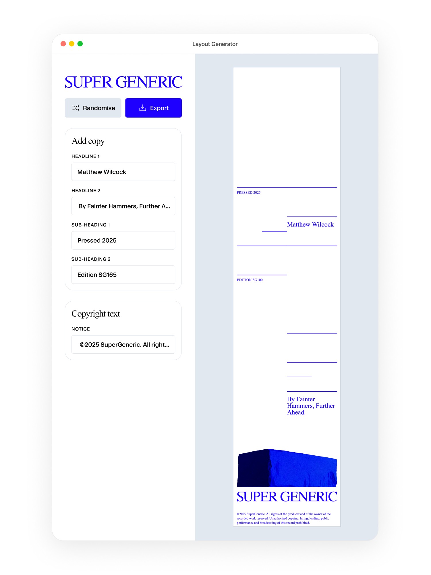 Custom-built online layout generator